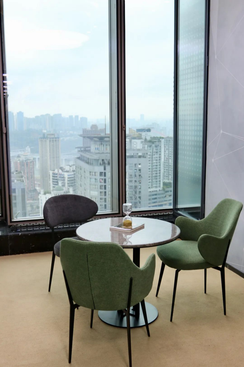 霍KING在办公与休闲区组合中,注重功能分区的合理性和流线的自然性,从外到内一次为公共、半公共、半私密、私密等空间层次,给予员工安全感和归属感。